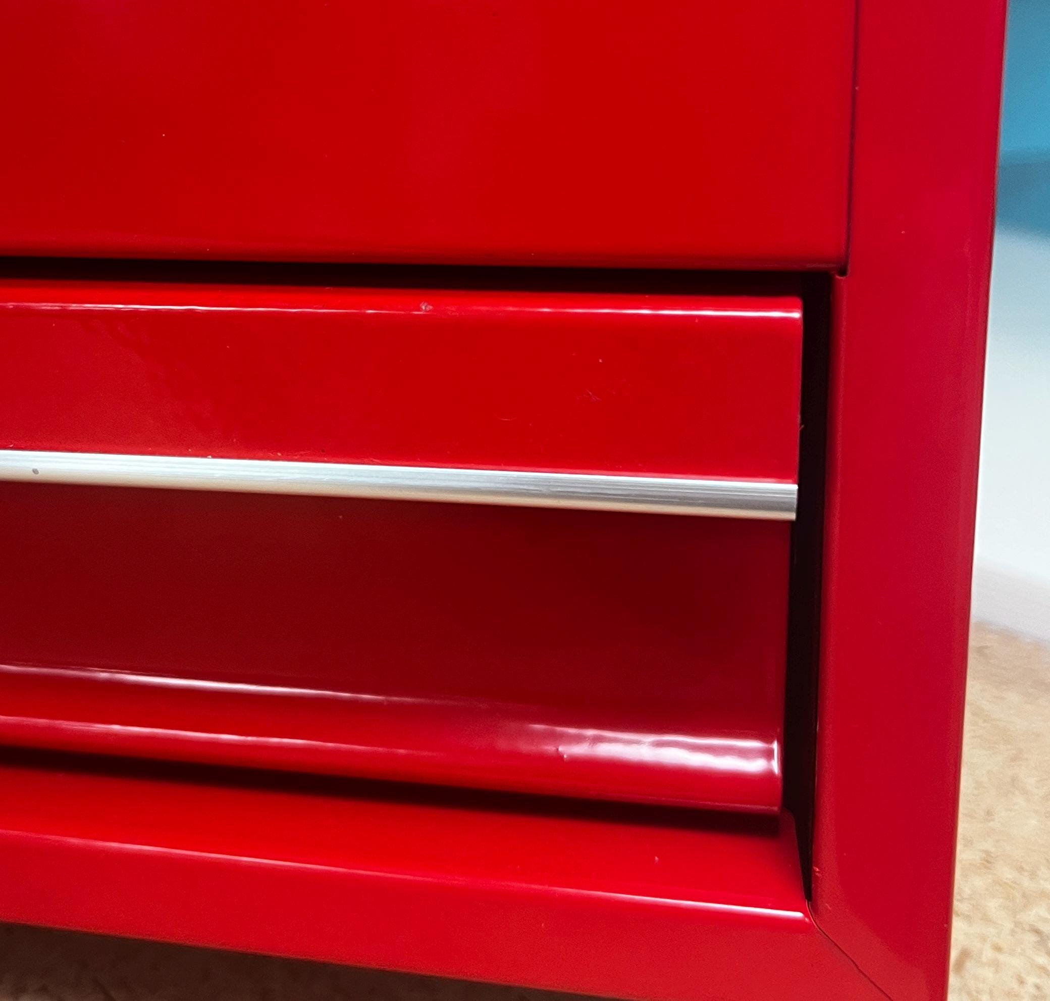 Keep your stash locked in the top section of this mini metal tool box to ensure it is safely stowed away from little hands. We use a 3-digit combination lock and strong hasp. Keep other non-cannnabis related items organized inside the easy pull, smooth motion slide drawer. Available in three styles and four colors.