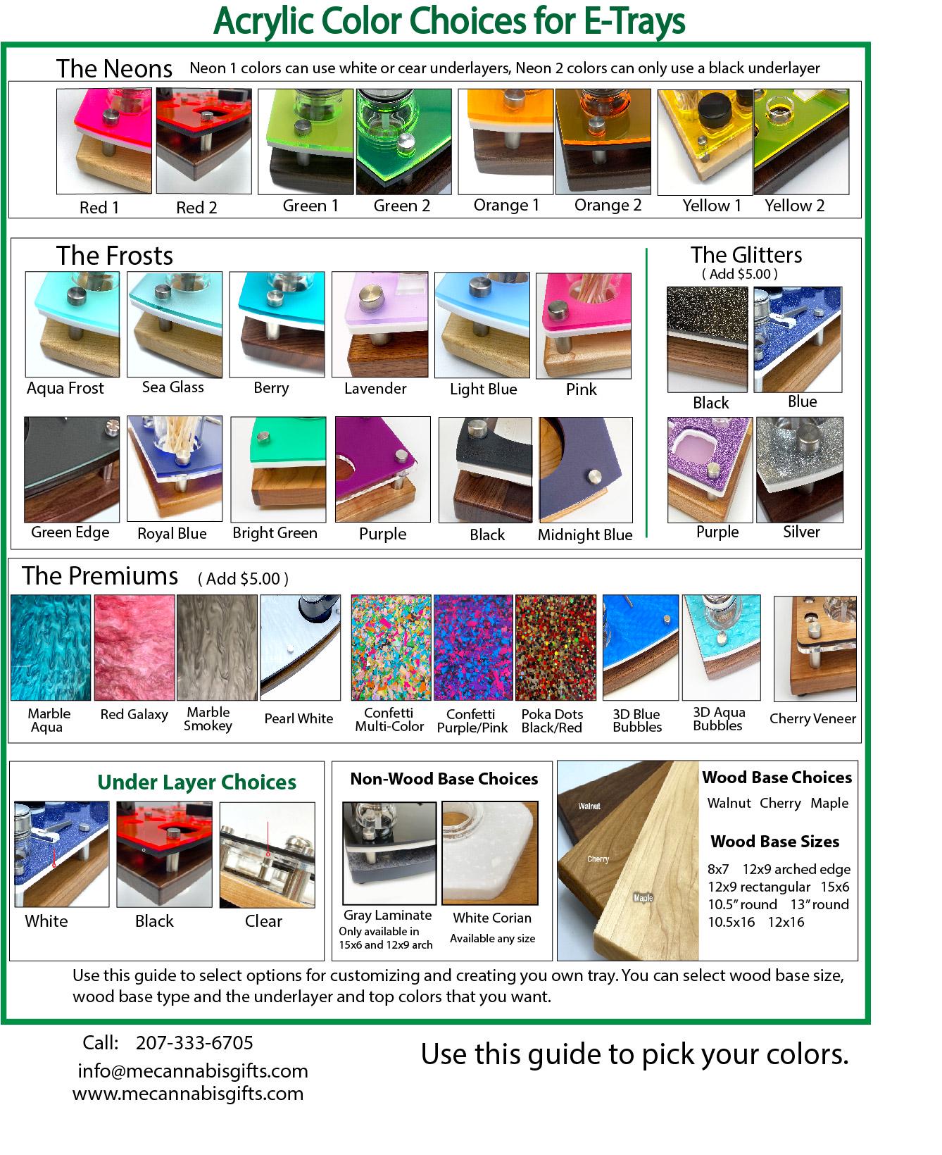 Our wood trays can be cleaned with isopropyl alcohol. The Acrylic E-Trays can be cleaned with a soft cotton cloth, microfiber cloth and a mild cleaner. We include a sample of Novus plastic polish with every purchase.